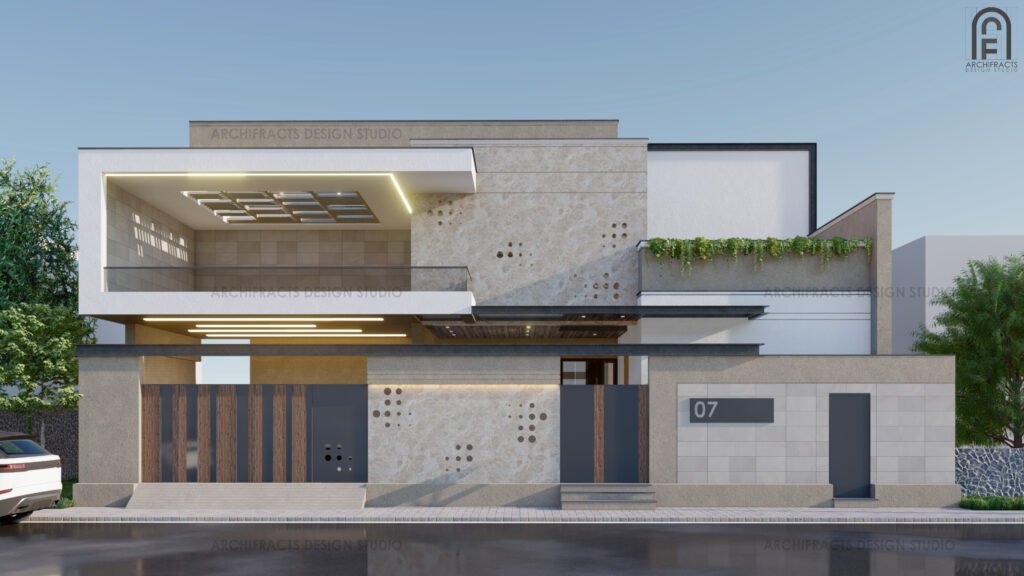 Situated on a combined parcel of 3 plots of land – with a site area of 6000 square feet, the Client’s requirement was a large family home for 5 people. The preference was for large common interactive spaces such as large living rooms and courtyards and Terrace garden. Spatial planning was carefully done to ensure natural light and ventilation throughout the building.
